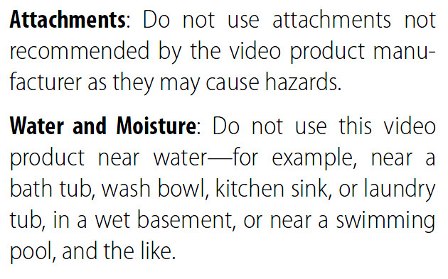 That’s great. Don’t give any example of what attachments may cause hazards (unauthorized wrist strap?) but give 6 examples of what can hold water.