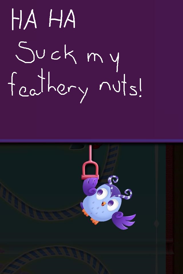 The only difference is the Satan of this world is a feathery hangover named Odus. Odus is a flightless, sleep at night, Vertigo riddled Owl. He sits perched on his little half-moon with a colored piece of candy along its side. Group too many of these candies, and that fucking idiot falls off and you fail.