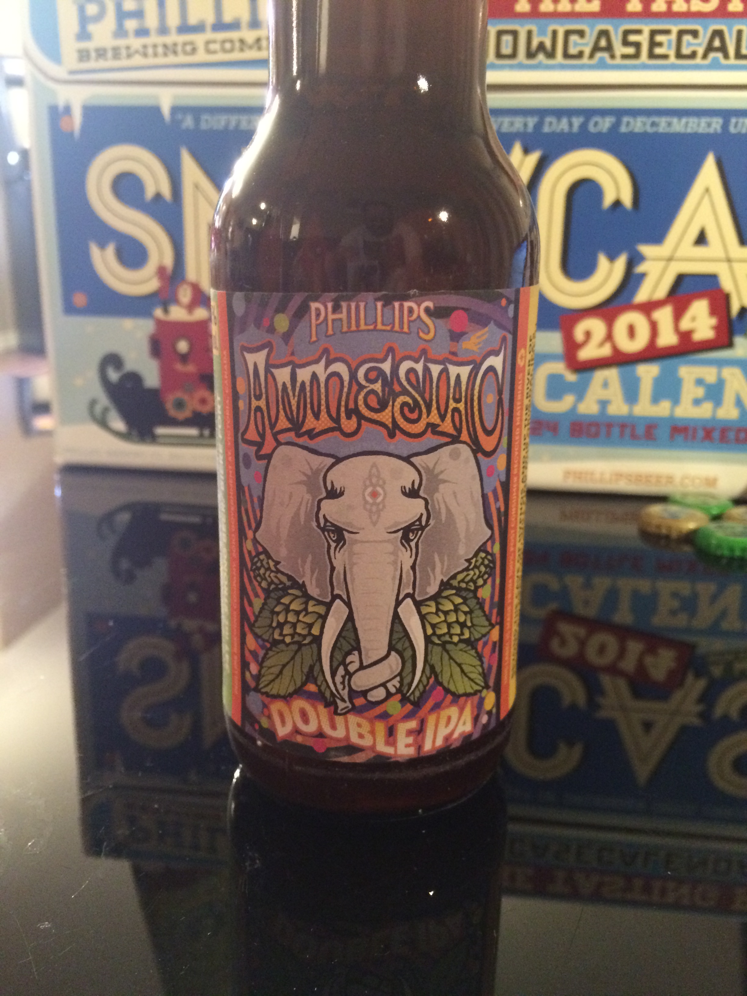 Label Blurb: EIGHT YEARS AGO, MATT PHILLIPS GAMBLED WITH A STACK OF CREDIT CARDS. HERE AND NOW, WE’RE CELEBRATING PHILLIPS EIGHTH ANNIVERSARY WITH THIS HOPPY ANNU-ALE, WE’RE THINKING OF THIS BREW AS A PRESENT TO OURSELVES, BUT WE CERTAINLY HOPE YOU’LL ENJOY THE HEFTY HELPING OF HOPS AS MUCH AS WE DO.