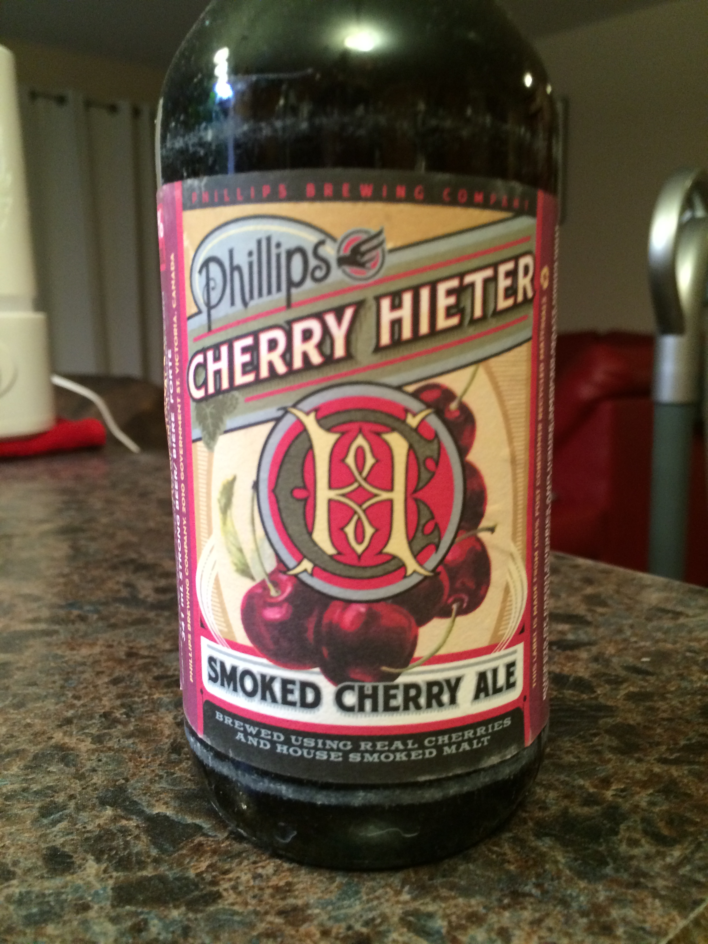 Label Blurb: BUCKETS OF FRESH CHERRIES AND HOUSE-SMOKED MALTS HIGHLIGHT THIS FRUIT FORTIFIED SEASONAL. FLAVOURS OF SWEET CHERRIES ARE BALANCED BY A STRONG MALT BACKBONE AND FINISH WITH A WHISP OF SMOKE. THIS BREW IS RIPE FOR THE SIPPING.