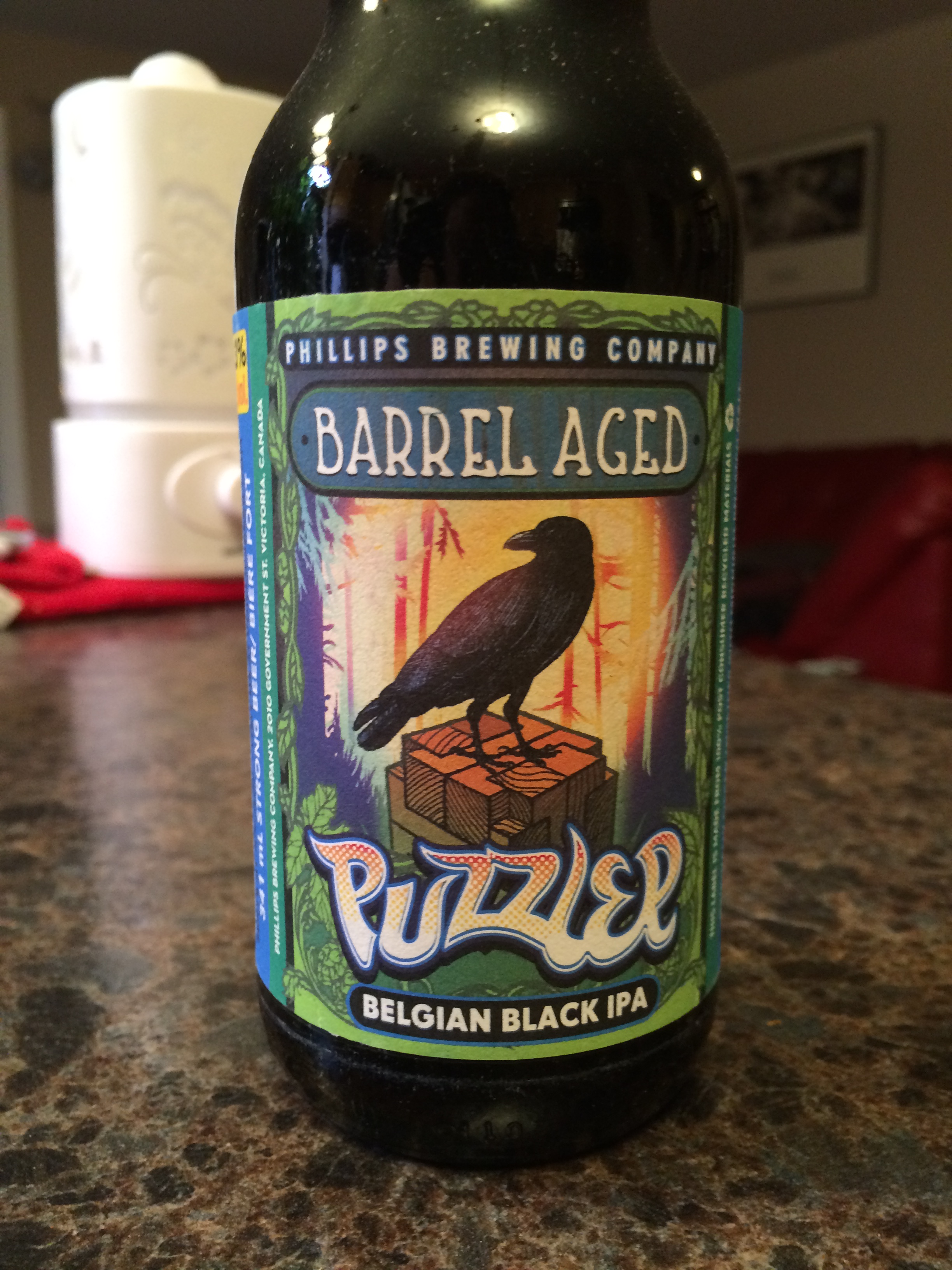 Label: Perfect analogy: Puzzler. I love Belgian and barrel aged beer, but you know how I feel about IPAs unless you have drank more than myself and skipped to the end.